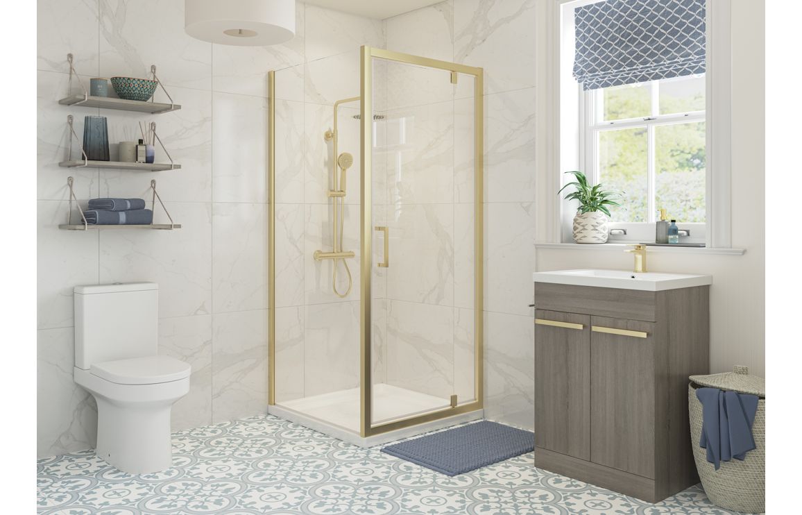 Aqua Silver 700mm Pivot Door – Brushed Brass