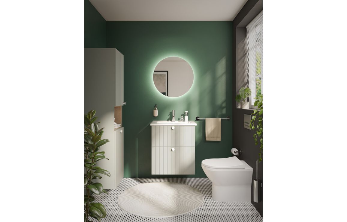 Root furniture comes in three styles – Groove Classic and Flat. Root Groove offers a contemporary bathroom design with matt colour options and stylish door detail.