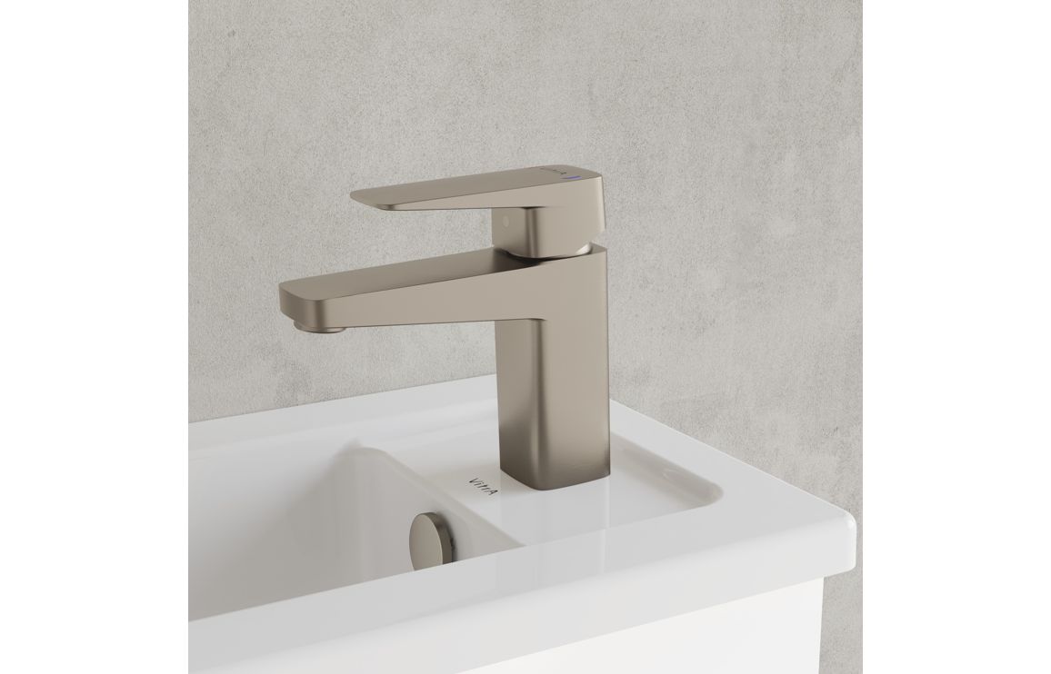 VitrA Root Square Compact Basin Mixer – Brushed Nickel